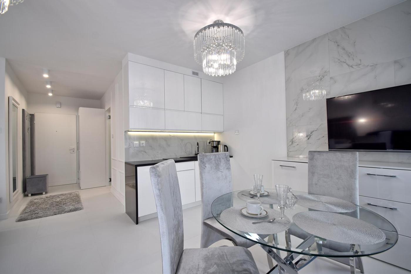 Apartament. Boasting a private entrance, this apartment also includes 1 bedroom, a seating area and 1 bathroom with a walk-in shower and a hairdryer. Meals can be prepared in the well-fitted kitchen, which is fitted with a stovetop, a refrigerator, a dishwasher and kitchenware. Featuring a terrace with a quiet street view, this apartment also offers a coffee machine and a flat-screen TV with cable channels. The unit has 2 beds. Apartament - 3 osobowy. Powierzchnia pokoju ok.: 39 mkw.
